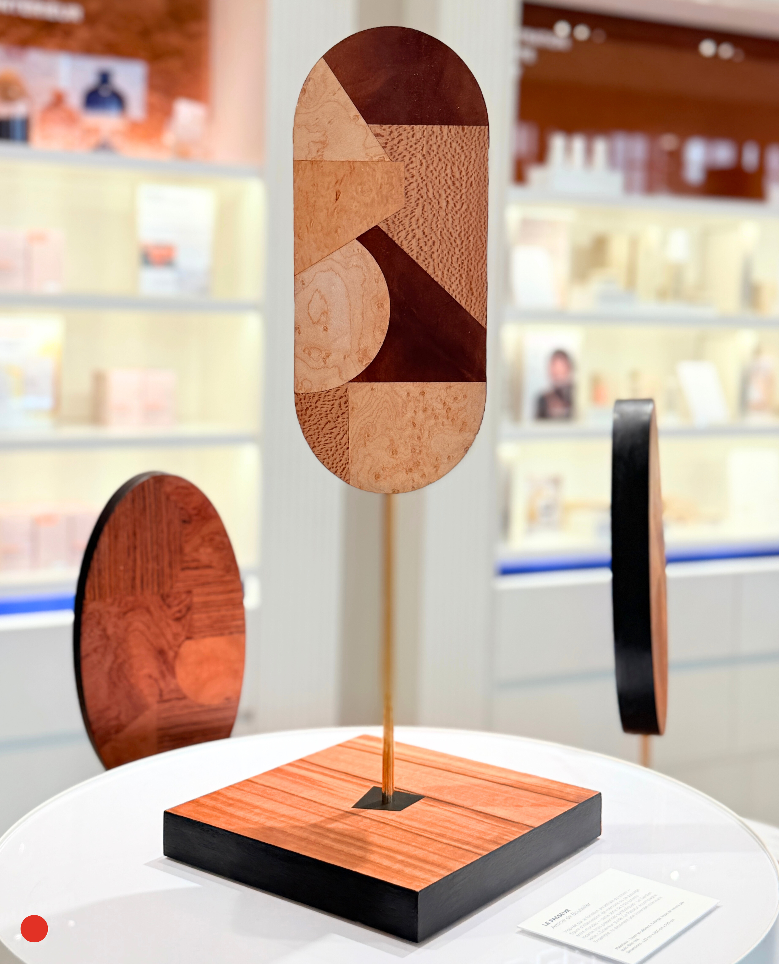Vous avez également la possibilité de commander une œuvre personnalisée en communiquant vos préférences à l’artiste, telles que le type de formes, la palette de couleurs, les essences de bois, le format, etc.